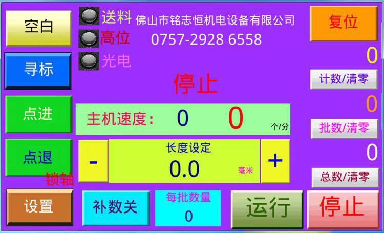 长度设定:显示制袋所设定长度,单位:毫米(也可以当按键直接调节长度)。