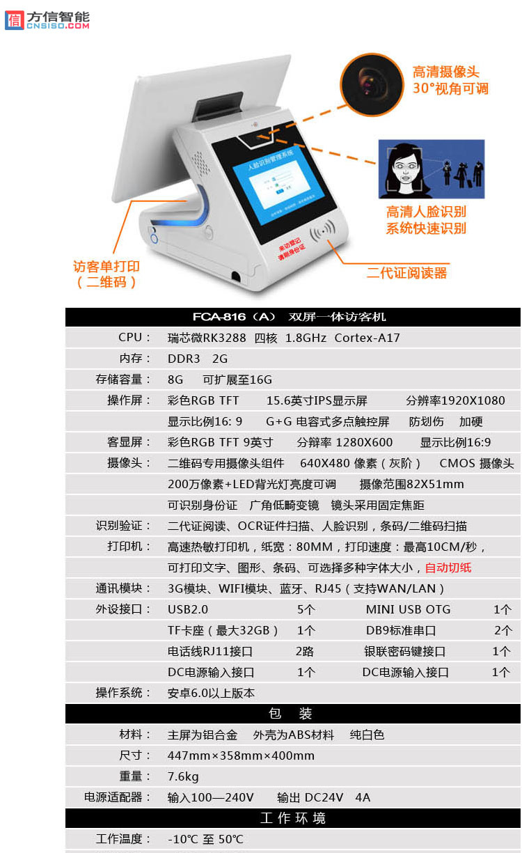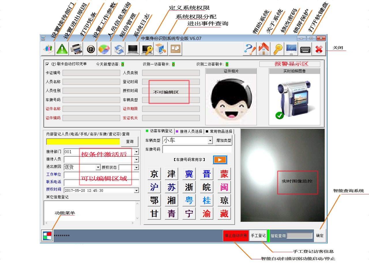 18岁前台,30岁的保安,60岁的门卫,都可以轻松使用"访客易",让机关,企业,校园来访登记真正实现自动化智能化管理 !!!配合方信其它系统轻松实现内部人事资料,客户资料,无缝管理,实现一次登记多系统共享使用!!!!!!!!!!完全自主知识产权,可以提供功能定制和功能扩展功能服务!!