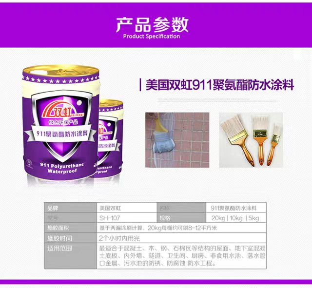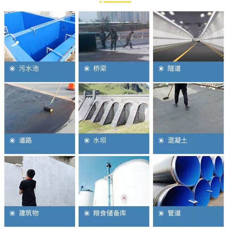 1、液态施工、凝固期短、是粘结与防水两种功能合二为一的材料,适合各种形状界面大面积无缝施工;