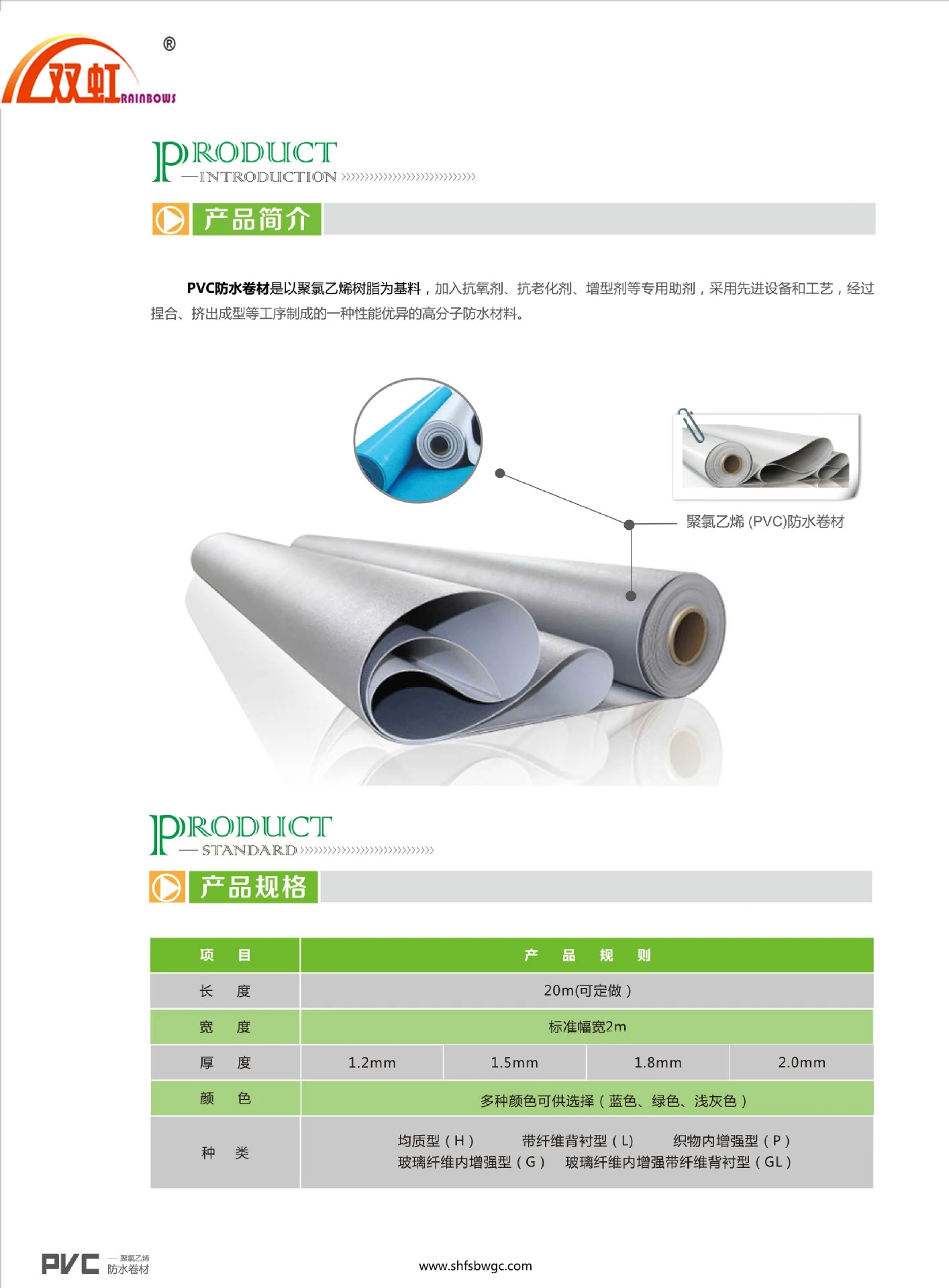 双虹 PVC 防水卷材是一种性能优良的高分子防水卷材