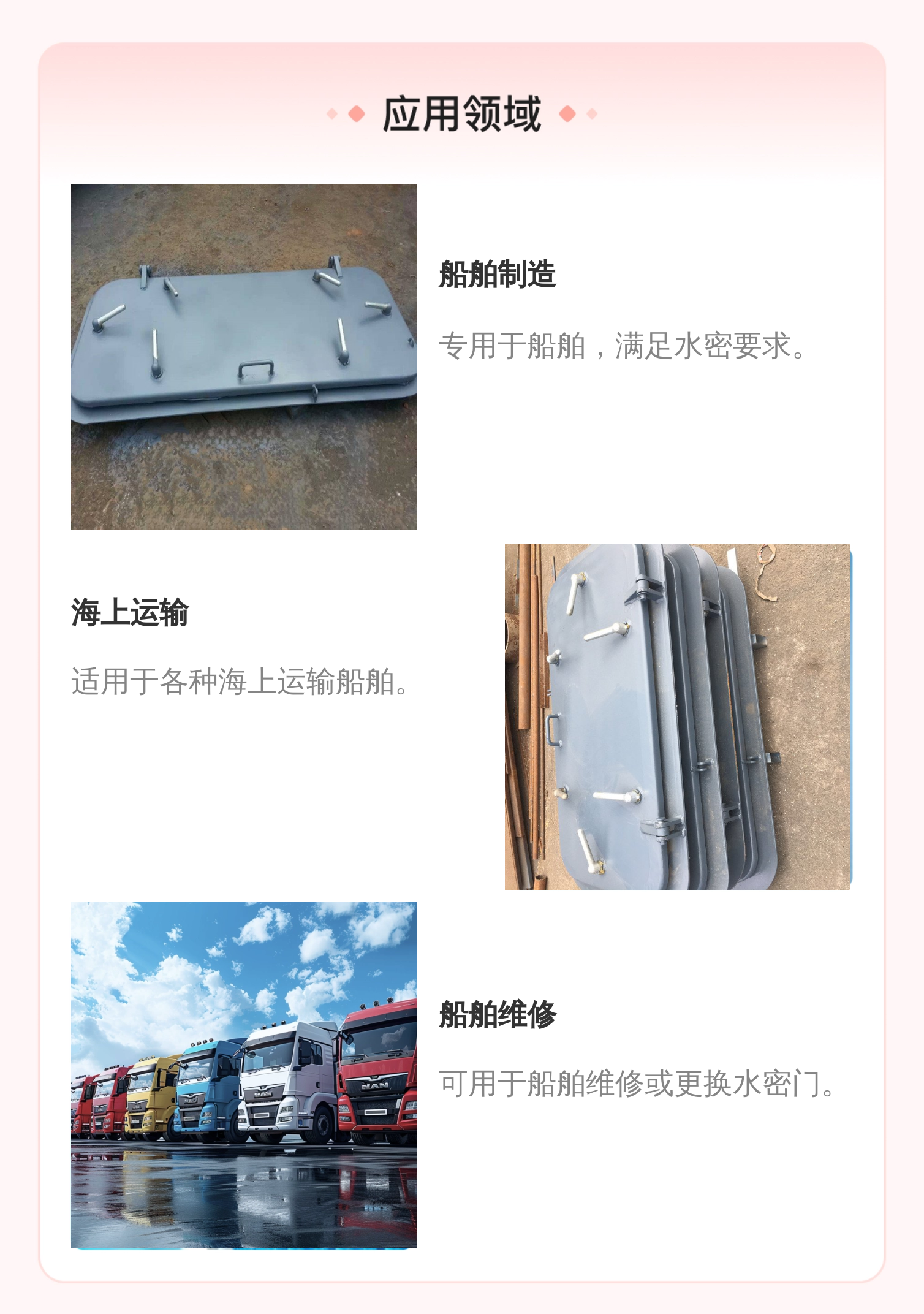 船用门、船用窗、船用盖、系泊设备、管系附件、梯及通风设备、附件、JIS标准类、岩棉、离心棉管、其它