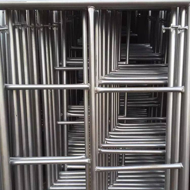 移动脚手架主要由主框,横框,交叉斜撑,脚手板,可调底座等组成。交叉拉杆又称斜拉杆、是纵向连接两副门架的交叉型拉杆。杆件两端压扁部分冲有销孔,组装时与门架立杆上的锁销锁牢。表面处理:电镀(冷镀锌)、 浸锌(热镀锌)脚轮:又称为地轮,可安装在移动脚手架下部,组成移动式脚手架.可作为机电安装.油漆粉刷.设备维修.广告制作的活动工作平台.脚轮为6寸带刹车,具有使用方便.移动灵活.安全可靠等特点.