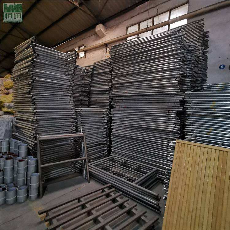 移动脚手架主要由主框,横框,交叉斜撑,脚手板,可调底座等组成。交叉拉杆又称斜拉杆、是纵向连接两副门架的交叉型拉杆。杆件两端压扁部分冲有销孔,组装时与门架立杆上的锁销锁牢。表面处理:电镀(冷镀锌)、 浸锌(热镀锌)脚轮:又称为地轮,可安装在移动脚手架下部,组成移动式脚手架.可作为机电安装.油漆粉刷.设备维修.广告制作的活动工作平台.脚轮为6寸带刹车,具有使用方便.移动灵活.安全可靠等特点.