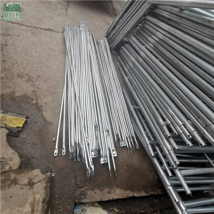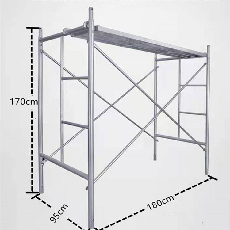 移动脚手架主要由主框,横框,交叉斜撑,脚手板,可调底座等组成。交叉拉杆又称斜拉杆、是纵向连接两副门架的交叉型拉杆。杆件两端压扁部分冲有销孔,组装时与门架立杆上的锁销锁牢。表面处理:电镀(冷镀锌)、 浸锌(热镀锌)脚轮:又称为地轮,可安装在移动脚手架下部,组成移动式脚手架.可作为机电安装.油漆粉刷.设备维修.广告制作的活动工作平台.脚轮为6寸带刹车,具有使用方便.移动灵活.安全可靠等特点.