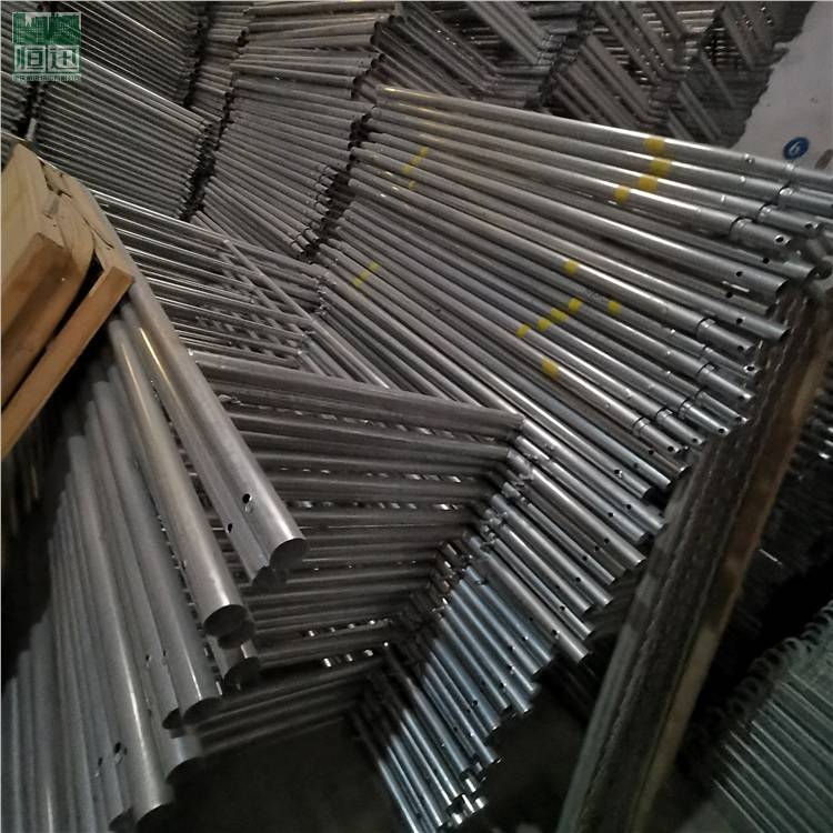 移动脚手架主要由主框,横框,交叉斜撑,脚手板,可调底座等组成。交叉拉杆又称斜拉杆、是纵向连接两副门架的交叉型拉杆。杆件两端压扁部分冲有销孔,组装时与门架立杆上的锁销锁牢。表面处理:电镀(冷镀锌)、 浸锌(热镀锌)脚轮:又称为地轮,可安装在移动脚手架下部,组成移动式脚手架.可作为机电安装.油漆粉刷.设备维修.广告制作的活动工作平台.脚轮为6寸带刹车,具有使用方便.移动灵活.安全可靠等特点.