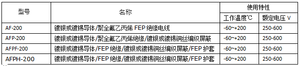型号:AF-200/AFP-200/AFF-200/AFPF-200,单芯屏蔽线及多芯线缆