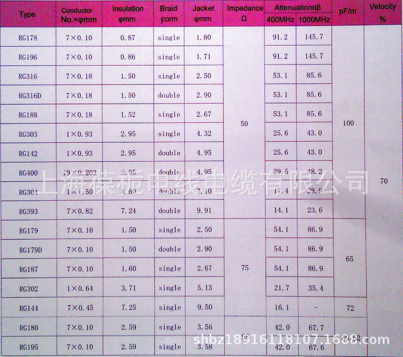 上海葆栀电线电缆有限公司供应RG316、RG316D、RG316FEP、RG316DFEP 实芯PTFE/FEP烯绝缘射频电缆