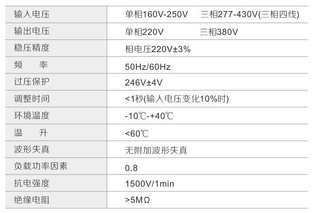 本系列稳压器为普通型,品种多、规格全、外观美等优点。具有波形不失真、性能可行、可长期运行等特点,设有过压保护功能,根据用户需要,可设欠压,延时等保护功能。可广泛用于任何用电场所,是一种理想的稳压电源。