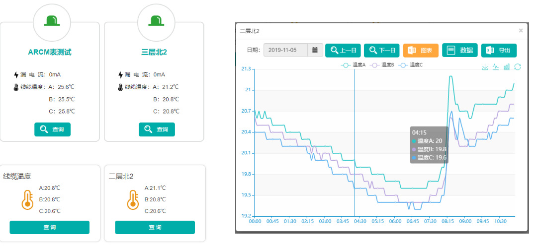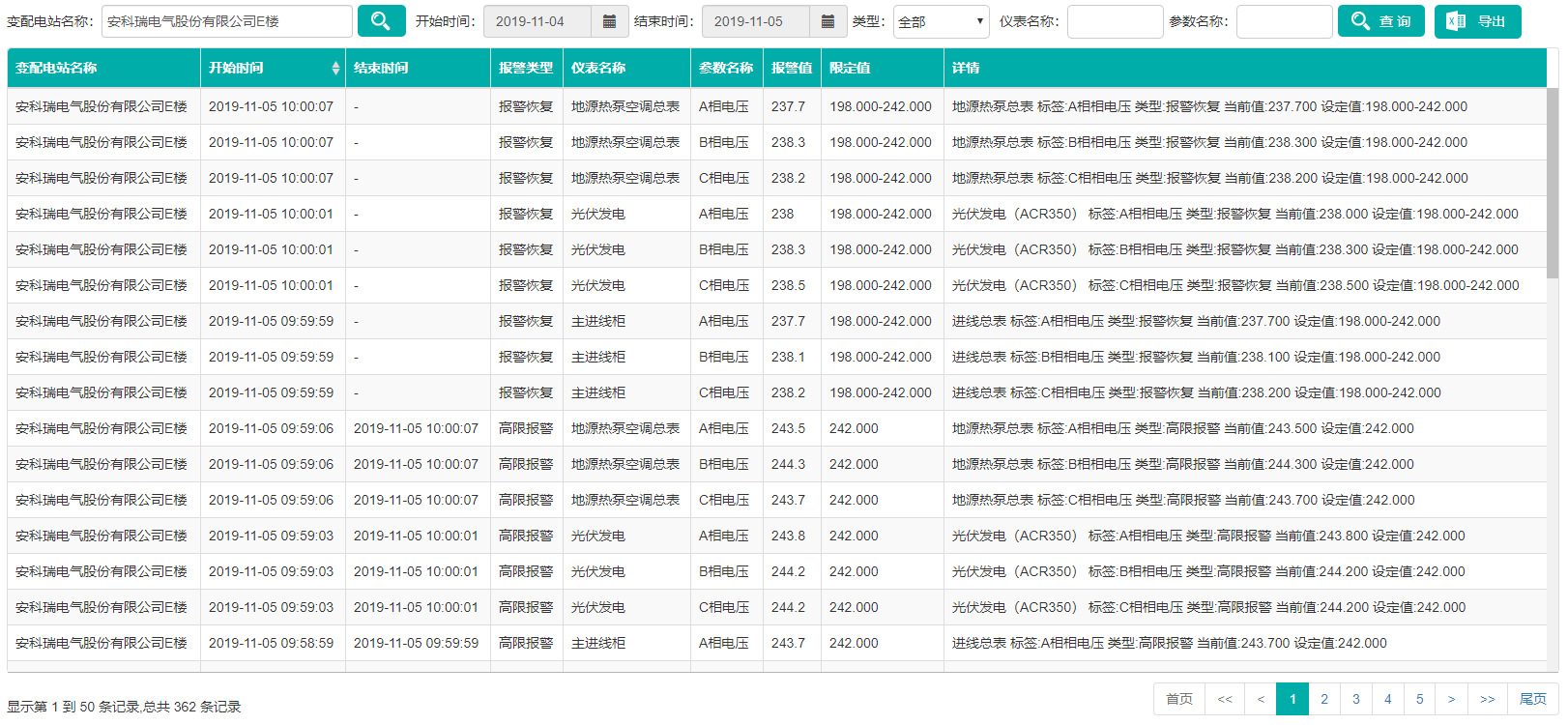 4.1.3 提供多种类型的查询报表,可以查询各配电回路的各类电力参数(电压、电流、功率、频率、谐波、三相不平衡度等),系统可以对某电力参数按照天、月进行极值统计;
