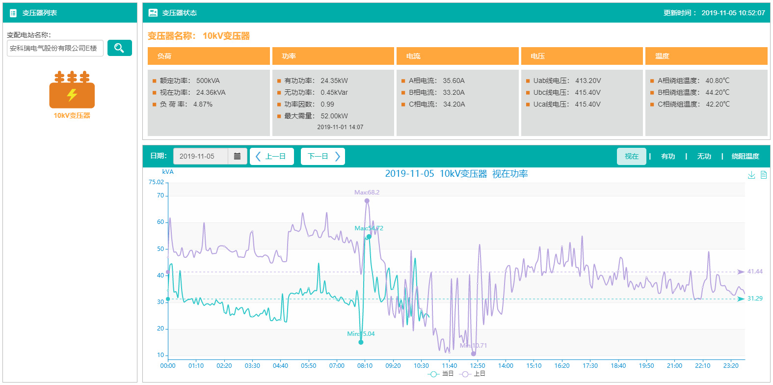4.1.2 实时监测变压器运行情况,包括功率、负荷率、需量、绕组温度等;