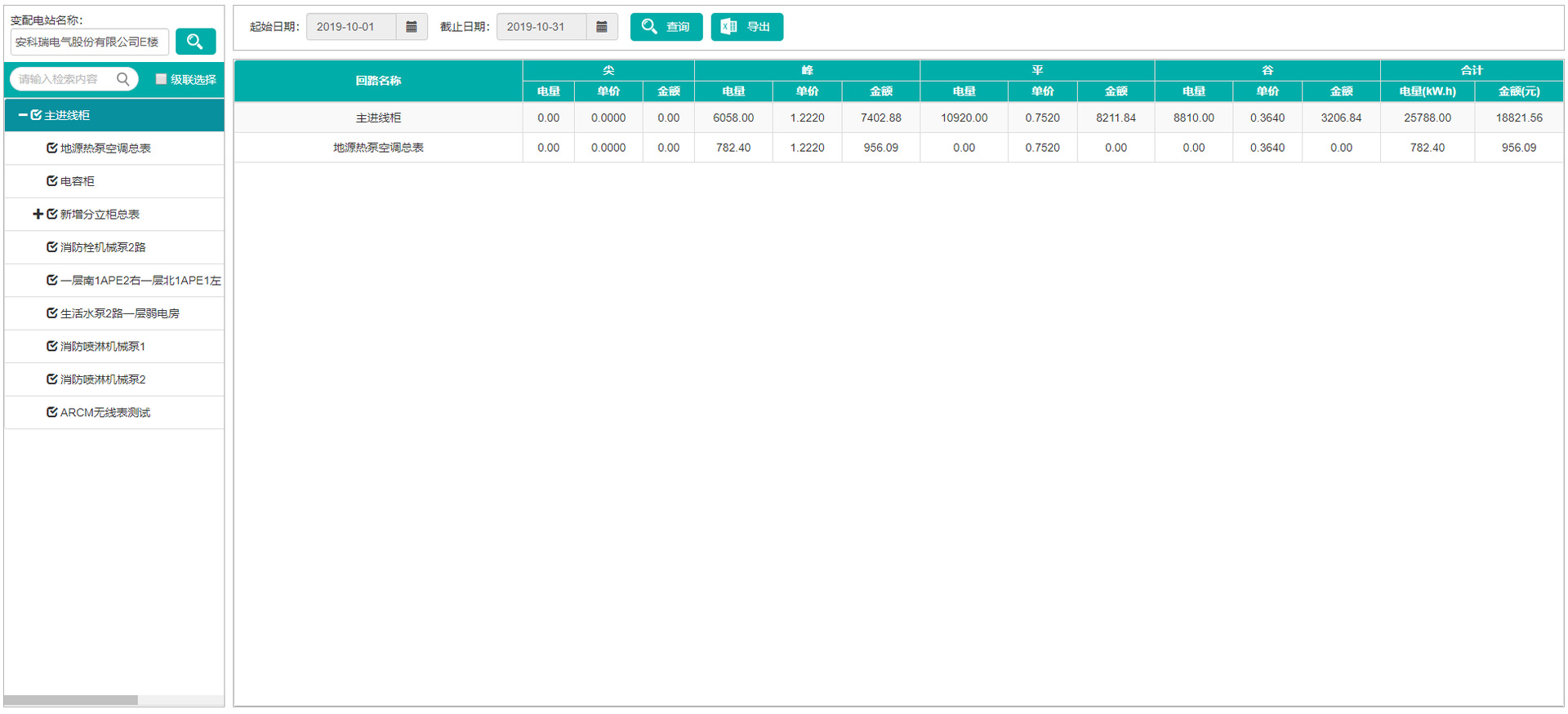 4.3.2 按尖、峰、平、谷统计各配电回路的用电量及用电金额;