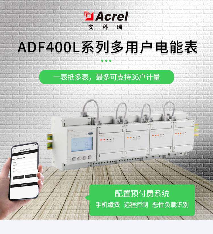 ADF400L系列多用户电能表,通过模块组合的方式可实现12路三相或36路单相的直接接入测量或12路三相互感器接入测量、直接接入和互感器接入的混合测量方式,该系列电能表因准确度高、集中安装、集中管理、安装灵活性高,互不干扰等优势深受小区、学校、企业等的青睐。该系列仪表支持预付费功功能。