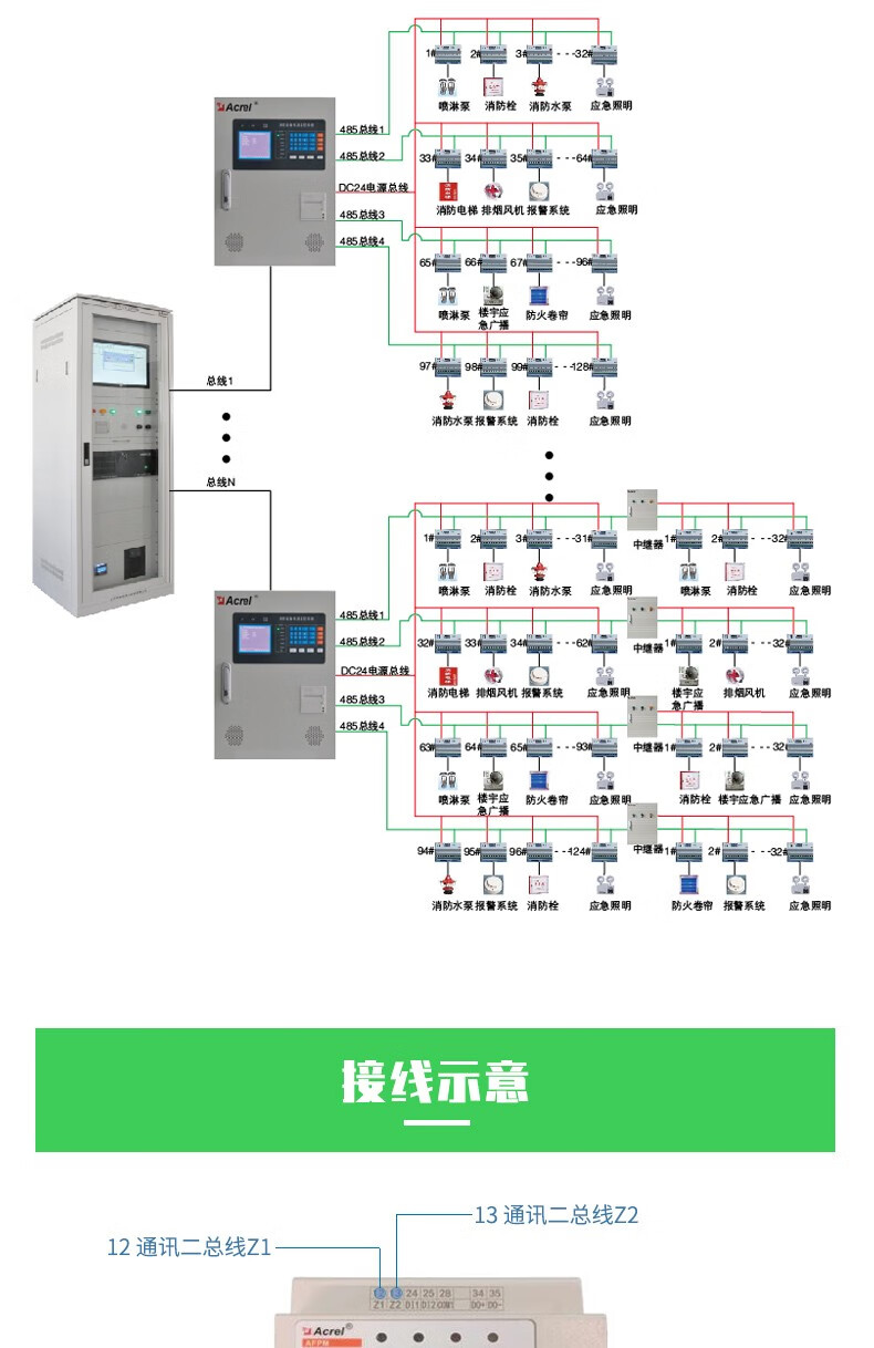 现代建筑内部,消防报警、防火、灭火系统种类繁多,并分布在建筑内的各个角落。当灾情发生的时候,消防设备能否处于正常的工作状态,直接关系到人民生命财产安全是否得到及时保全。因设备老化、电力中断造成监控设备与防火设备的工作中断,延误了火灾的控制,而发生的悲剧屡见不鲜。因此,针对消防设备电源的监测系统便应运而生,对各类消防设备的工作状态进行有效监控。
