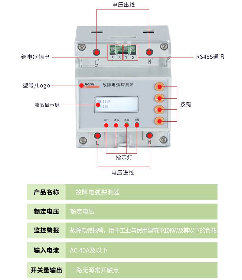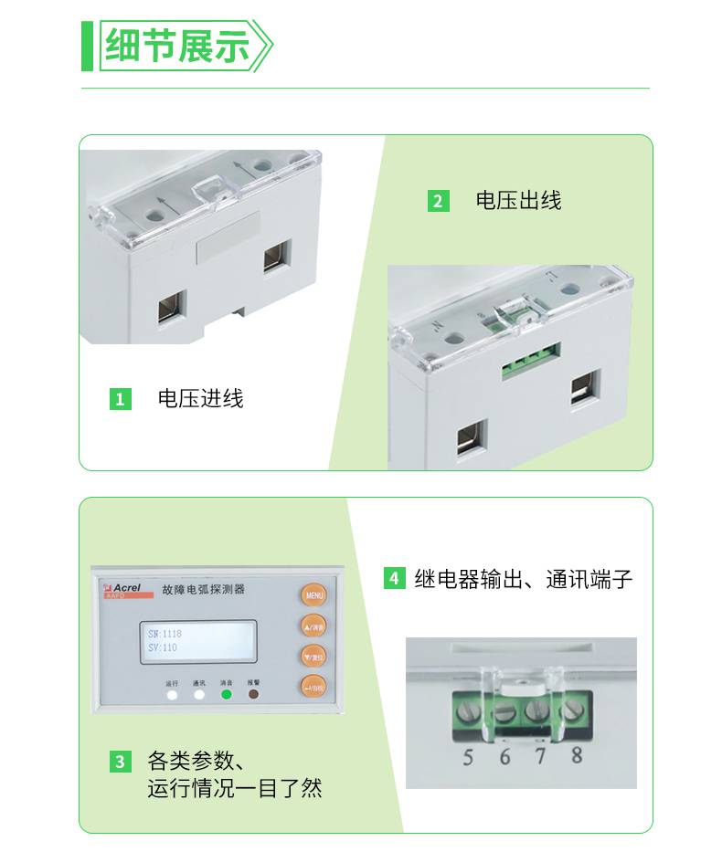 故障电弧集中显示单元适用于工业与民用建筑中10KW及其以下的电气线路,其保护线路长度不宜大于100米。产品遵循***GB 14287.4-2014,可适用于养老院、学校、商业建筑、宾馆、工厂、库房、图书馆、办公室、家庭住宅、以及所等。