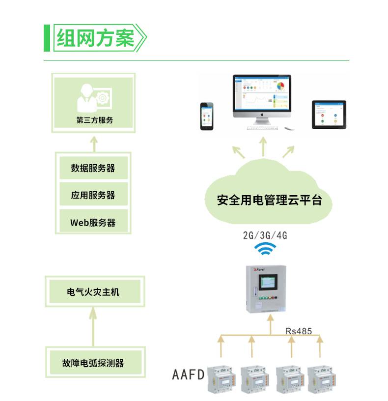 安科瑞多回路故障电弧AAFD-DU/4G,4G通讯。故障电弧集中显示单元对接入线路中的故障电弧传感器进行统一检测。故障电弧传感器可以对故障电弧(包括故障并联电弧、故障串联电弧)进行***检测,当检测到线路中存在引起火灾的故障电弧时,显示单元可以进行现场的声光报警,并将报警信息传输给电气火灾监控设备。集中显示单元可同时通过对配电回路的剩余电流、导线温度等火灾危险参数实施监控和管理。