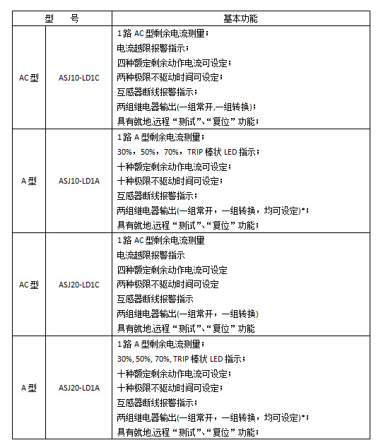 订货范例:具体型号:ASJ20-LD1C技术要求:额定剩余动作电流300mA;极限不驱动动作时间0.5s;上电工作时继电器输出1组常闭、1组转换。通讯协议:无辅助电源:AC220V
