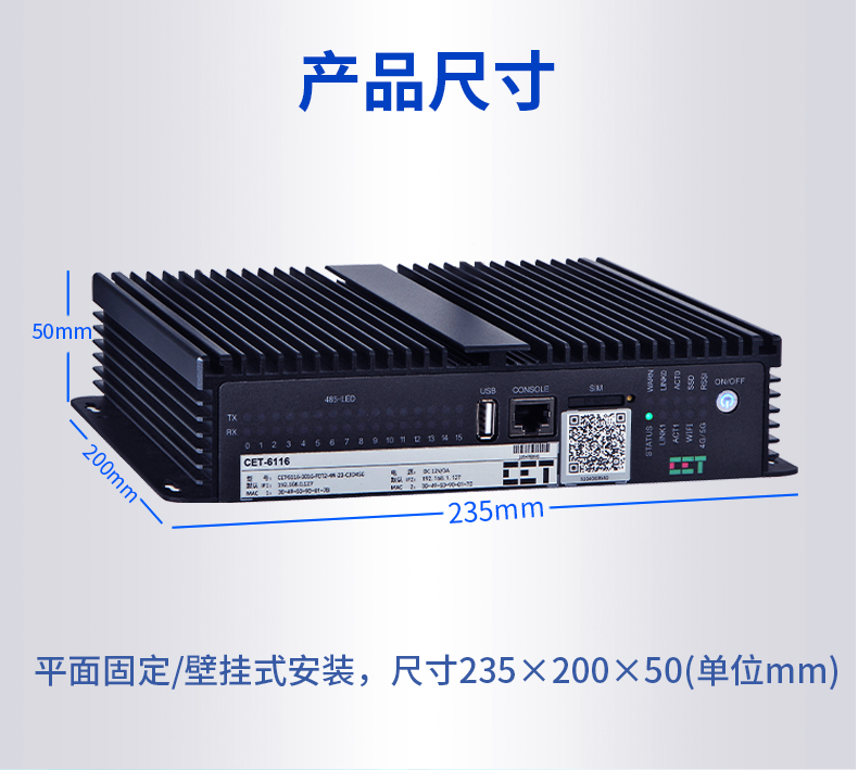 平面固定/壁挂式安装,尺寸235*200*52(单位:mm) |
