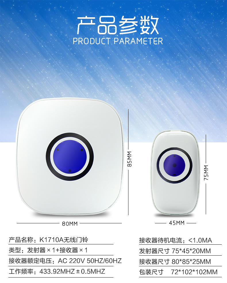 k1710新款家用无线数码门铃叮咚