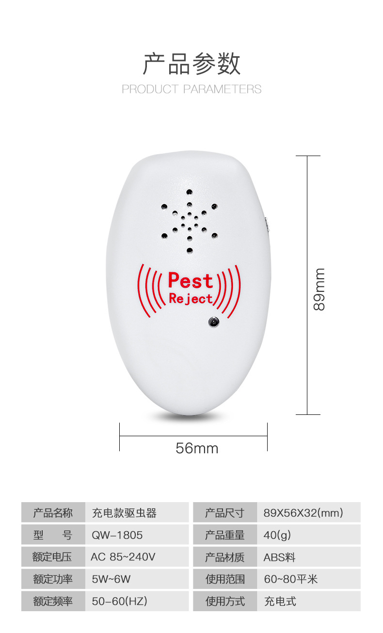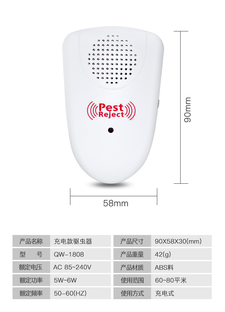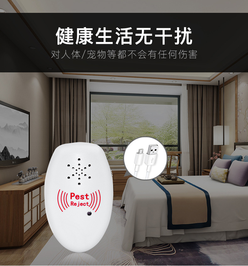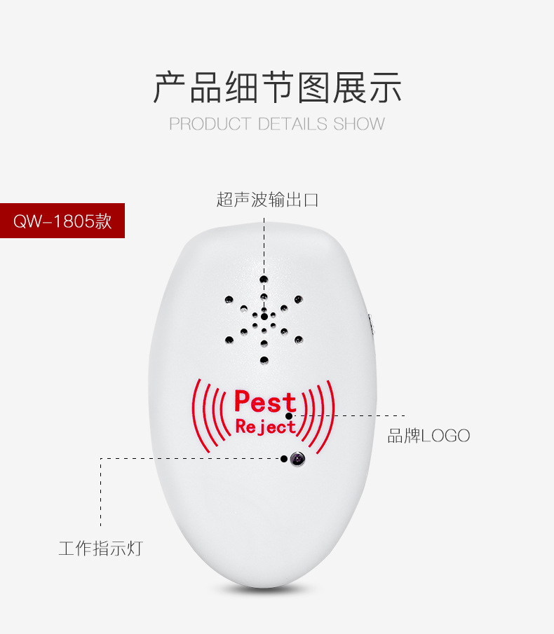 ●本产品根据超声波原理,产生固频及变频超声波,有效驱除室内的老鼠及蚊子等害虫。
