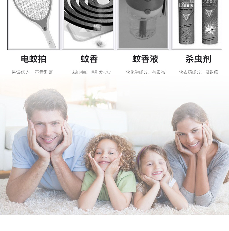 ●本产品采用高科技手段,可以产生一种极为特殊的电磁波。通过本身的发射元件和电源线的传播,能有效刺激所控制范围内的蟑螂、蚂蚁、蜘蛛、跳蚤、臭虫等害虫的神经系统和听觉系统,使其产生不适而逃离。