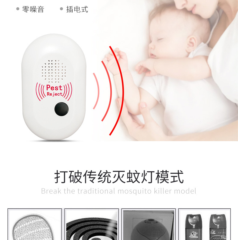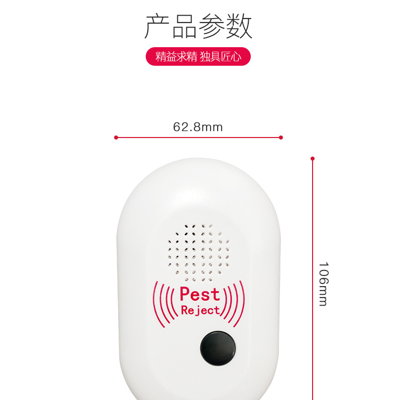 ●本产品根据超声波原理,产生固频及变频超声波,有效驱除室内的老鼠及蚊子等害虫。