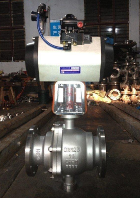 当控制器按事先编好的程序对某个电磁换向阀输出一个电信号,该电磁换向阀动作,使带压仪表气过电磁换向阀的切换进入气动执行机构的气缸上腔或下腔,推动活塞运动使阀们开启或关闭。阀门的工作流向应是高进低出