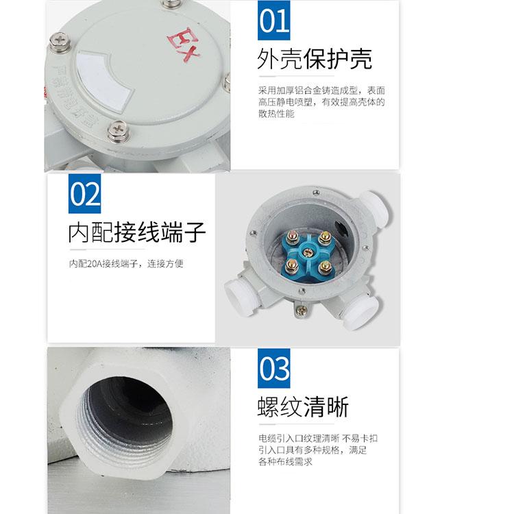 防爆性能:防爆接线盒能够在易爆气体环境下工作,即使盒内出现电路火花或渗透爆燃性气体,也能防止小范围的爆燃对现场危险区域产生影响。