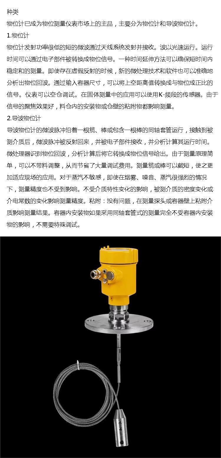 应用:适用于需要准确测量物位且物料性质允许接触测量的场合。