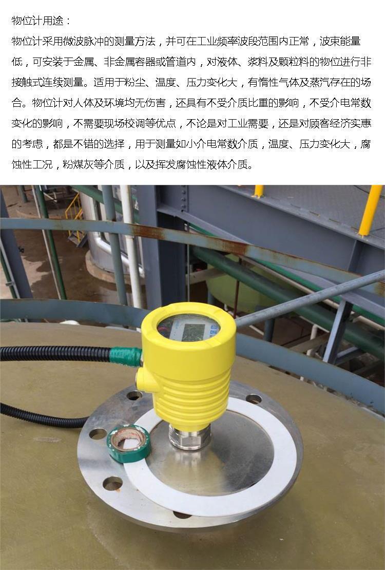 雷达液位计的应用领域非常广泛,包括但不限于石油化工、食品加工、水处理、制药、农业、纺织、造纸、印刷以及汽车制造等行业。在石油化工行业中,它可以用于化工设备、贮罐和储罐等容器的液位和密度的测量;在食品加工行业中,它可用于食品储存罐及输送管路的液位监测及控制;在水处理行业中,它可用于水处理设备中水的监测和计量。此外,雷达液位计还可以用于监测城市的水资源使用和消耗情况,以及在智能制造领域对物料、原料进行准确的加工控制。