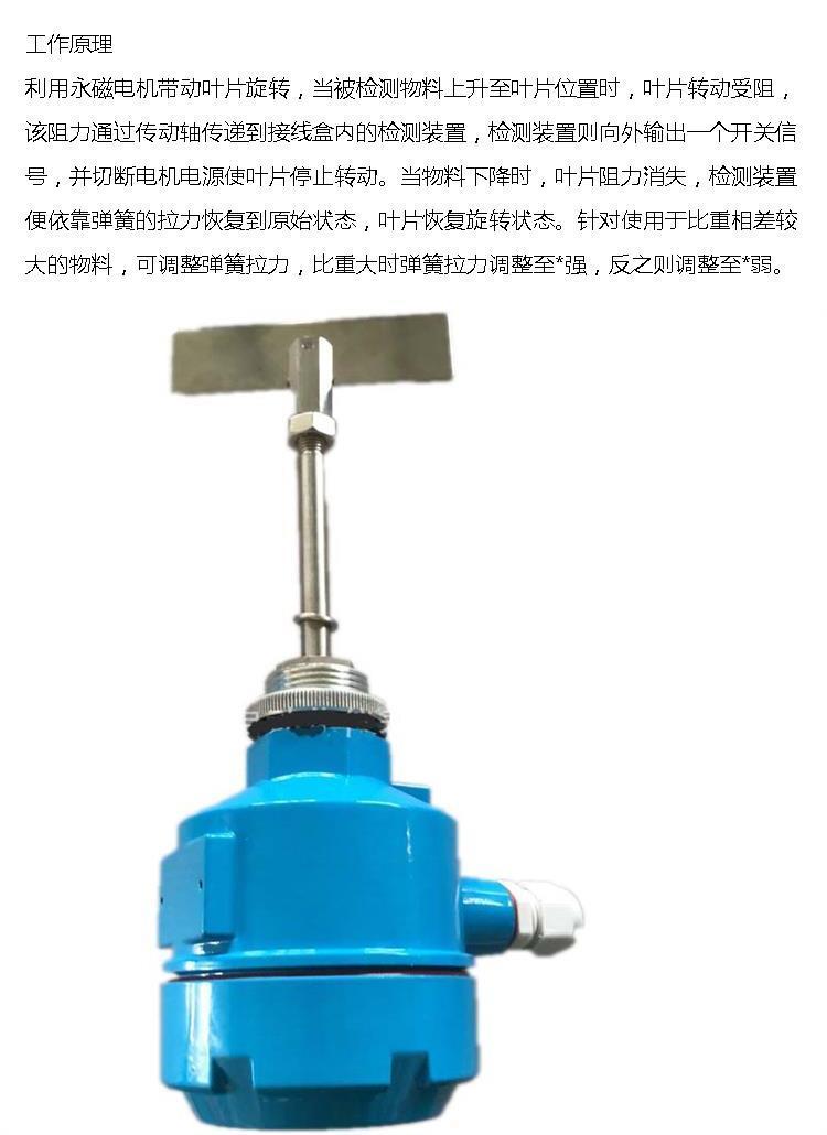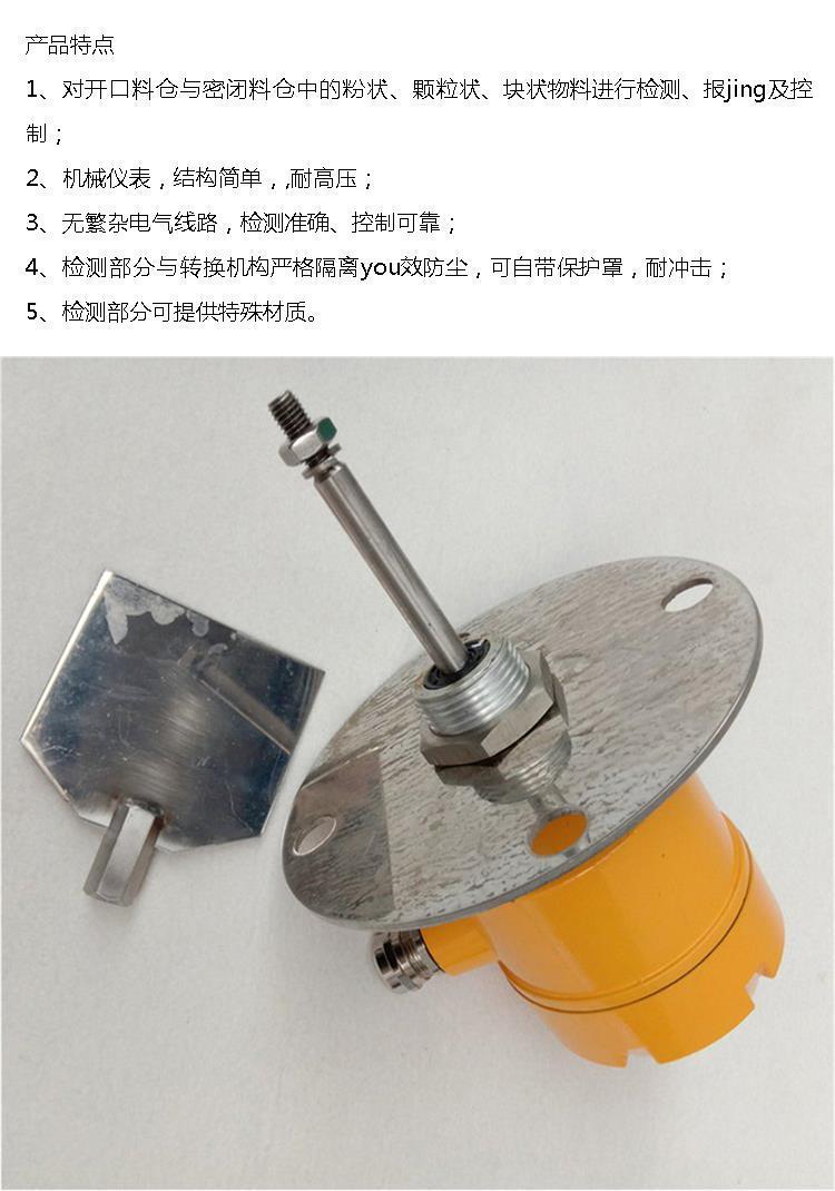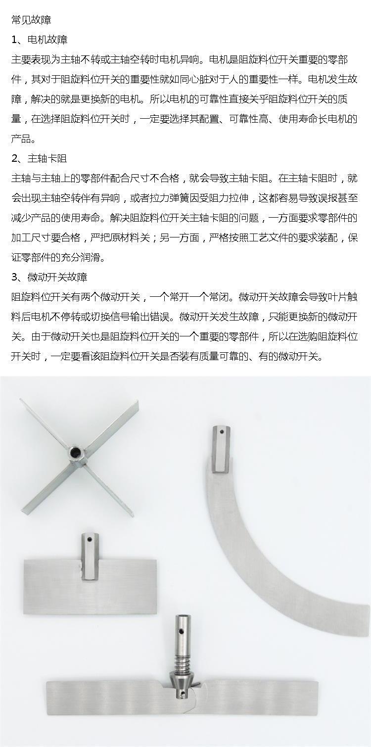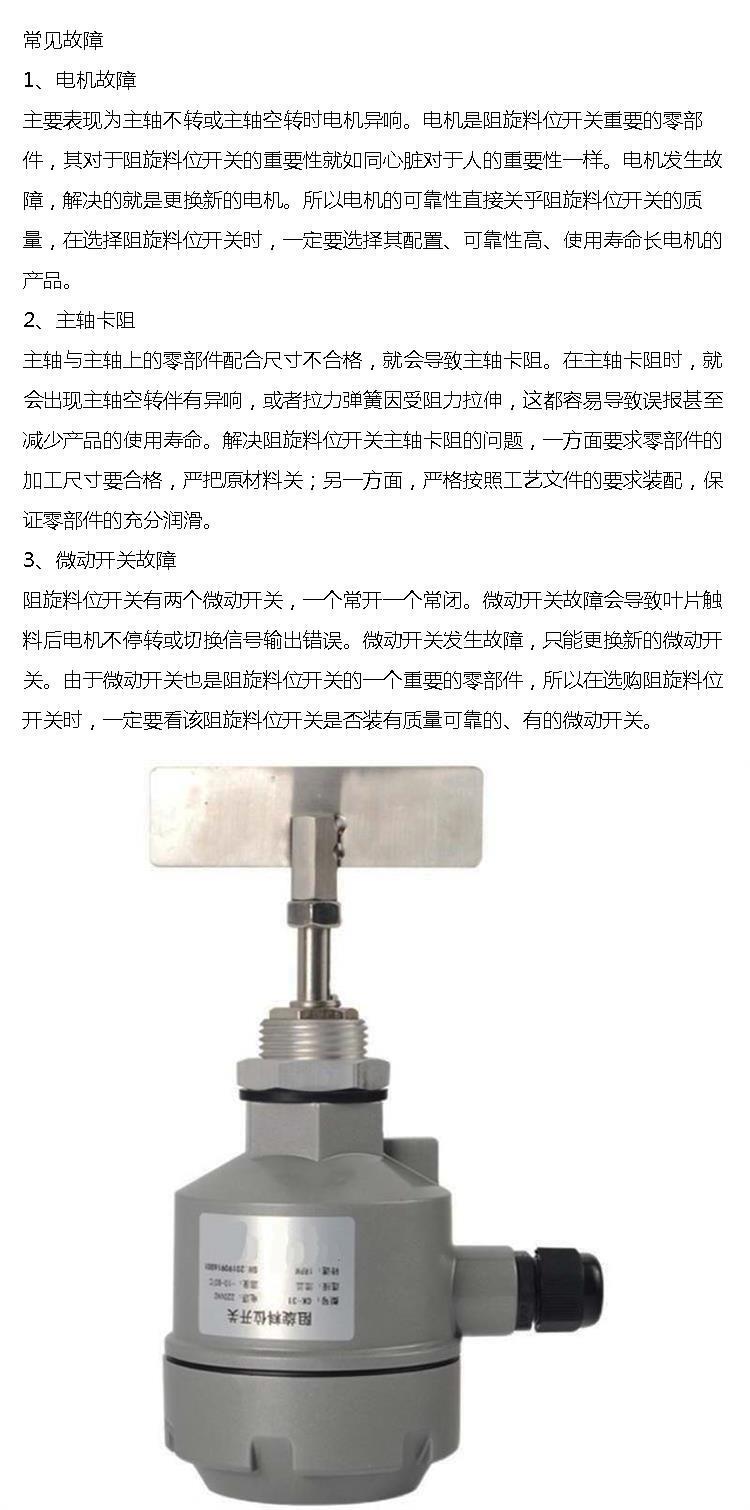 结构简单,工作可靠:阻旋式料位控制器采用机电位控原理,接触测量料位,结果真实、准确可靠。