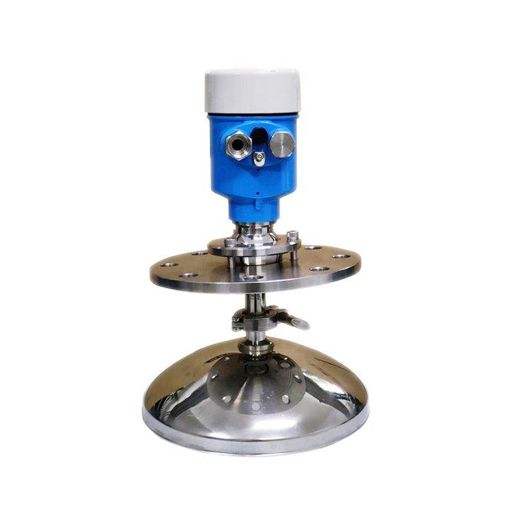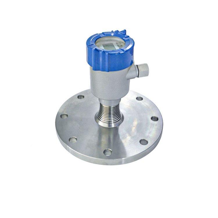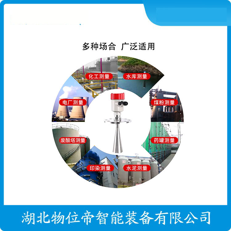 雷达液位计基于时间行程原理进行测量。发射装置发出高频脉冲,这些脉冲在空间中以光速传播,当脉冲遇到物料表面时,会发生反射,反射回来的脉冲被仪表内的接收器接收。接收器将接收到的距离信号转化为物位信号,通过微处理器进行处理,识别出微脉冲在物料表面所产生的回波。距离物料表面的距离D与脉冲的时间行程T成正比,关系式为:D=C×T/2,其中C为光速(C=300000km/s)。通过输入空罐高度E(=零点)和满罐高度F(=满量程)等参数,仪表可以自动适应测量环境,并输出对应的信号。