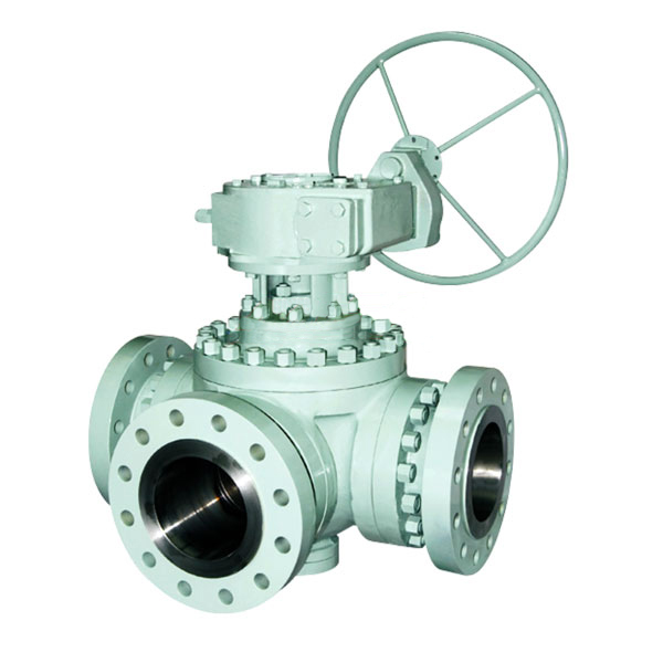 T型流道的三通4面阀座球阀,采用4面阀座,受力平衡,保证闭止通道上可靠密封。主要用于分流、混流、换向以及三通道的完全开放。