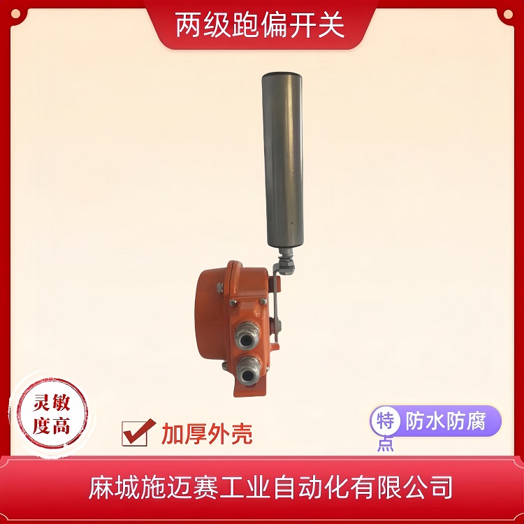 两级跑偏开关:意味着该装置有两个独立的动作位置(角度),对应两个级别的报警信号。