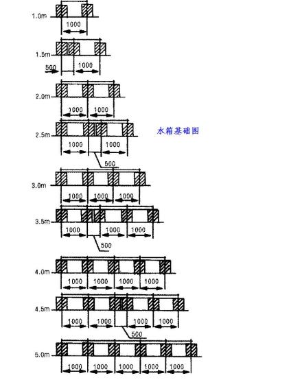 水箱基础图13、水箱基础图4、水箱基础施工技术要求:a、由混凝土撑条组成的整体基础平面,水平度公差不得大于5mm;且该平面对角线长度之差不得大于20mm。b、基础端面至墙壁(四面)的水平距离均不得小于300mm。果不错,以后工业与民用建筑采用smc水箱大势所趋。