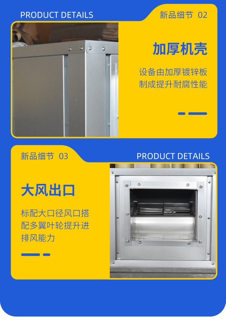 本系列风机箱具有体积小、重量轻、风量大、噪声低、省电、运转平稳、现场拆装等特点,可落地或吊式安装。