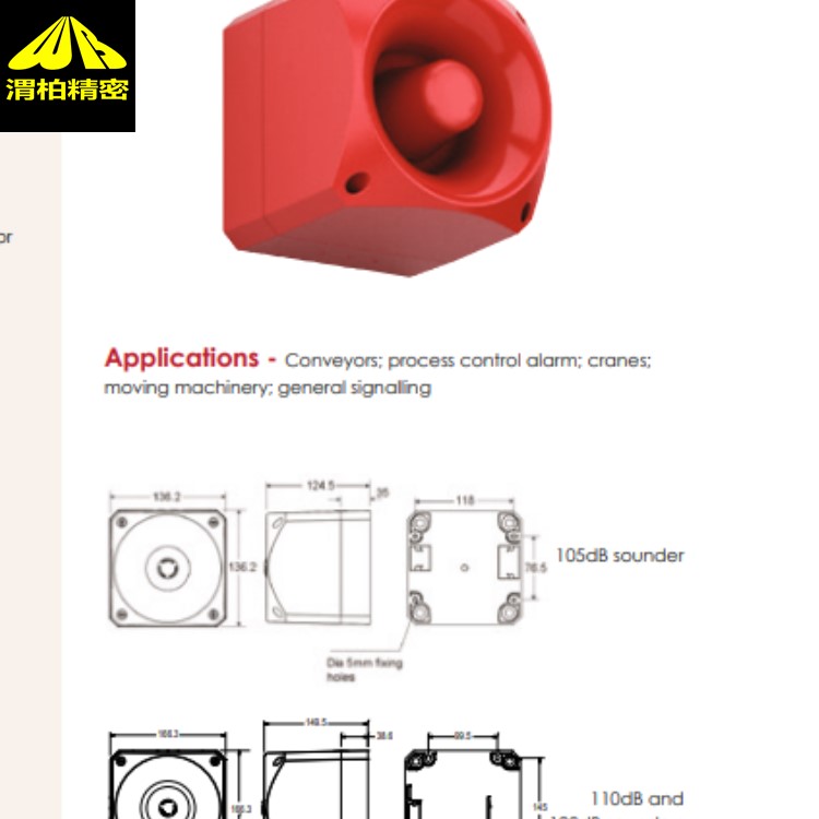 重量: 105dB声音-0.7kg; 110dB sounder -1.1kg; 120DB声音-1.8kg