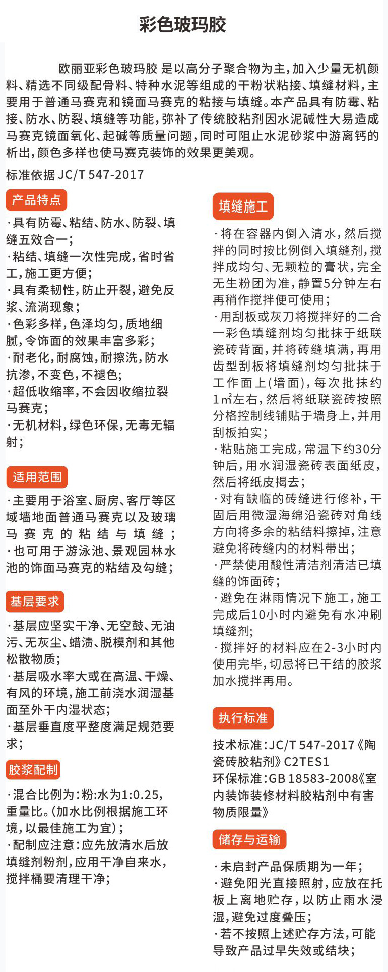 欧丽亚瓷砖胶、瓷砖胶、瓷砖粘结剂、欧丽亚益胶泥、内外墙涂料、防水砂浆、美缝剂、抗裂砂浆、腻子粉、彩色填缝剂、防水背胶、界面剂、地坪砂浆、装饰砂浆、石膏找平砂浆、硅藻泥、干混砂浆系列、保温找平凝胶、隔音涂料、自流平砂浆等各系列产品,欢迎咨询!