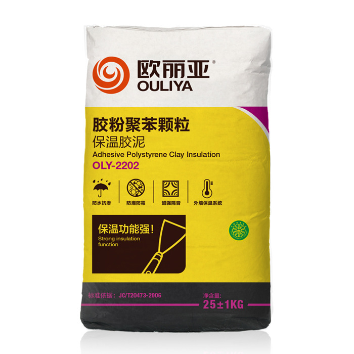将搅拌好的欧丽亚胶粉聚苯颗粒保温胶泥用力按压于刚上墙尚未干燥的界面胶泥上。设计保温层≤50mm时,每遍厚度≤20mm,间隔24h以上方可进行下一遍抹灰。设计保温层>50mm且建筑高度超过30m时,距保温层表面20mm处增加一层镀锌金属网,增强保温层与结构连接的整体性,镀锌金属网应用预埋钉上的镀锌铅丝绑紧,建筑高度超过二十层时,在层间加金属分层条,用射钉固定。保温层一遍抹灰时,应达到灰饼厚度并用大杠搓平门窗、洞口、垂直平整度应达到本工法质量要求。保温层固化干燥后(手按不动,一般为5天以上),方可进行抗裂保护层施工。瓷砖粘结剂系列、聚合物内外墙腻子系列、防水抗渗类、节能保温类、地面隔音类、彩色填缝剂系列、石膏系列、饰面材料系列、干混建筑砂浆系列、界面剂系列、自流平砂浆系列。欢迎咨询!