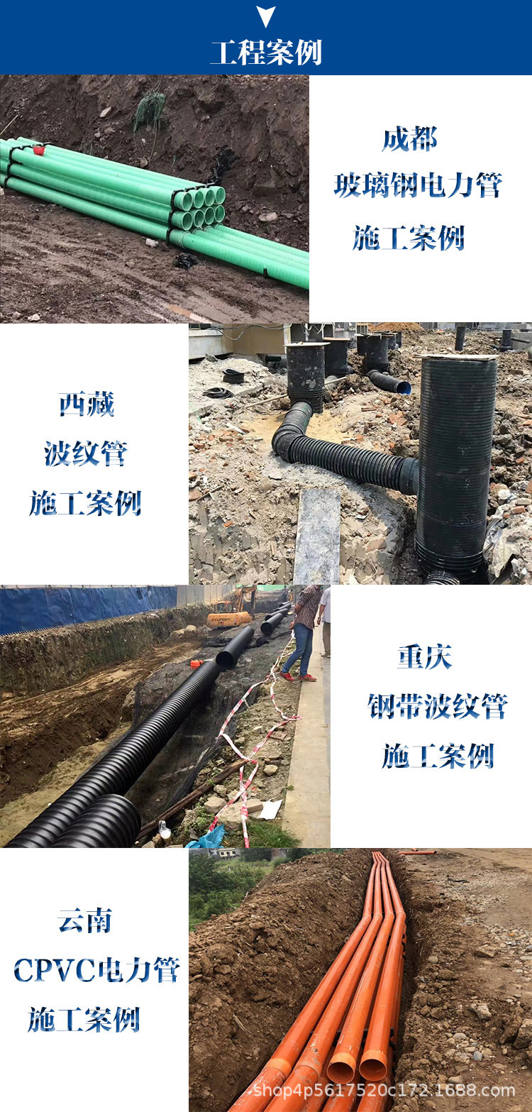 玻璃钢电力管又称玻璃纤维增强塑料导管,以玻璃纤维为增强材料,与不饱和树脂粘结成型,可分为低碱、中碱、高碱管,根据含碱量确认质量好差,玻璃钢电力管抗压力强、重量轻、内壁光滑,摩擦系数小,在穿用电缆时轻松,不损伤电缆。玻璃钢电力管,是电力电缆、通信电缆地下设施中,在受外界压力或碰撞时,起保护作用的电缆保护装置。