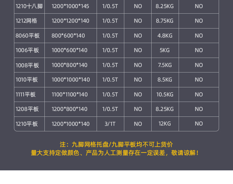 一、1008九脚平板规格参数