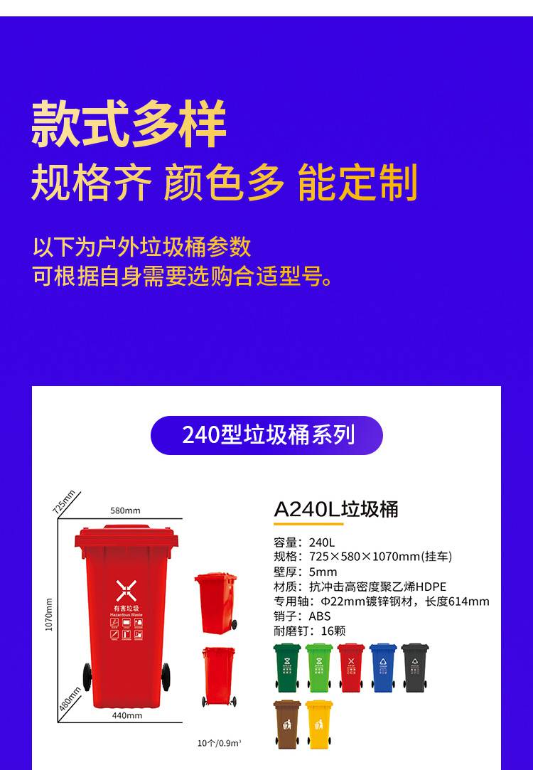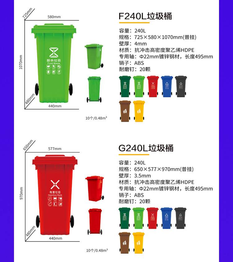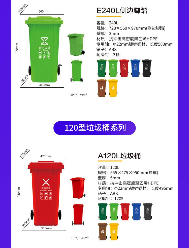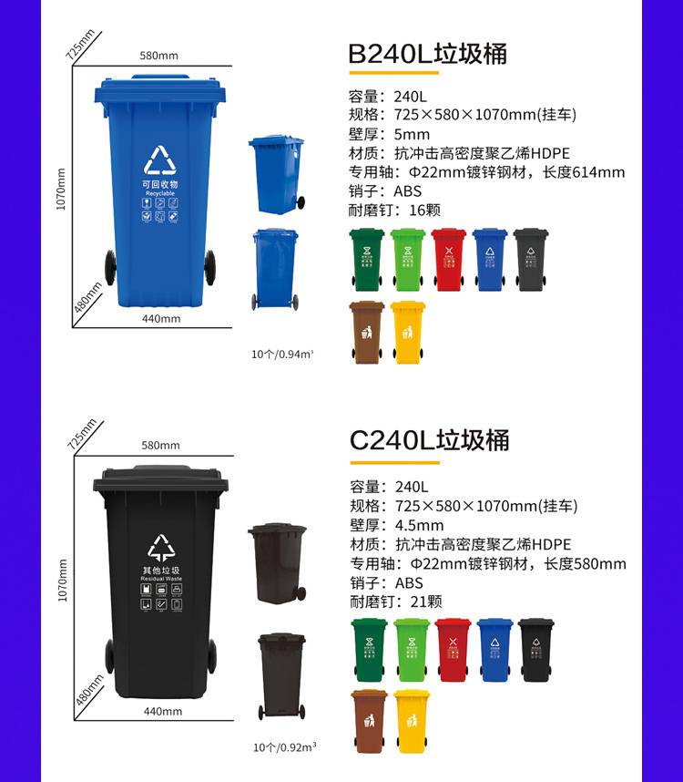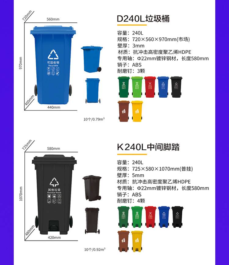 塑料垃圾桶是清洁、环卫很多行业使用的产品,给城市、小区卫生、各类公共场所带来清洁、卫生和环保。它在现实生活中是无处不在的一种环保产品,采用高密度聚乙烯HDPE或聚丙烯PP聚丙烯一次注塑成型,应用在环卫、乡镇街道、物业小区、广场公园、餐饮行业、工业园区等各大户外场所
