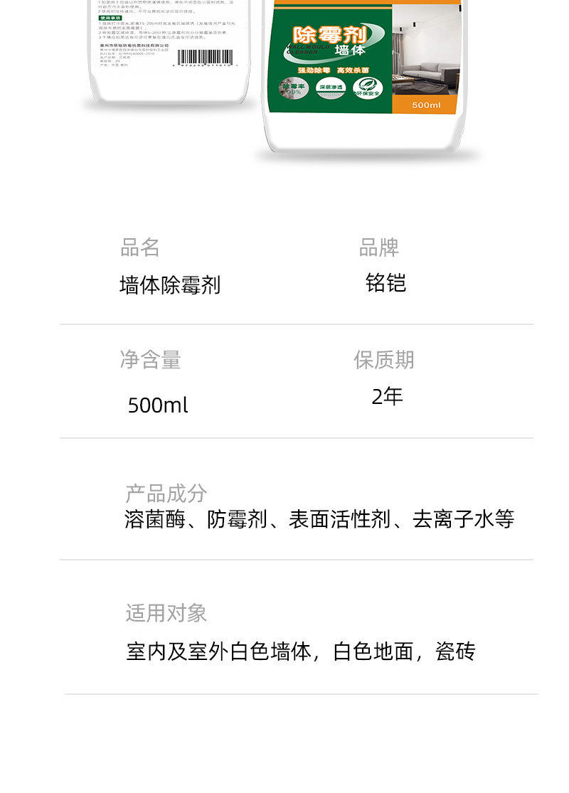 1,常规发霉:1KG/60平方,一桶可消除约1500平方米的墙体霉斑;