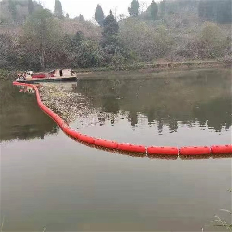 直径30厘米拦浮飘水库进水口拦污漂排是柏泰公司经过多年的塑料浮筒生产及技术开发经验,经过不断探索实验,浮筒材质采用进口LLDPE聚乙烯为原材料,经过滚塑整体成型,壳体有一定的强度和韧性,不怕风吹日晒造成的老化,聚乙烯适合用于水环境,对水质不会造成污染,并可回收利用。安装后基本不用维护,可以用十来年不用更换。