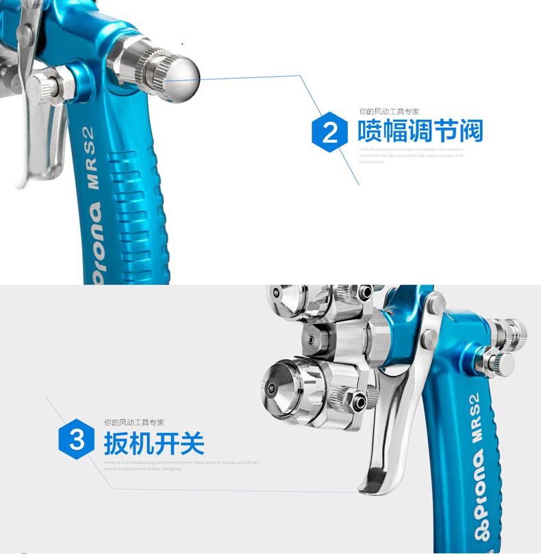 2.能够单独调节涂料喷出量,适合双组份配比的溶剂和双色喷涂。