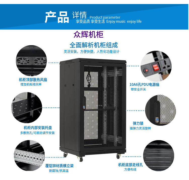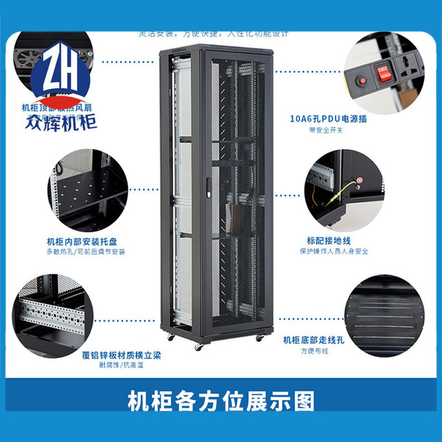 7、配件齐全,质量可靠;上、下部走线孔配有分组盖板,前后门及侧门可容易折装,方便工作。