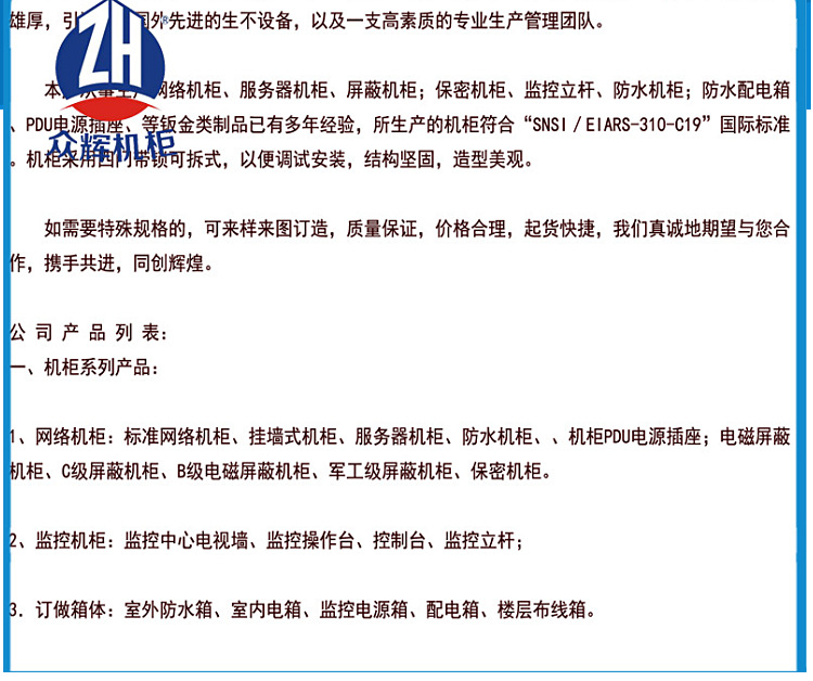 ◆网络机柜采用1.2--1.5MM上海宝钢冷轧钢板。