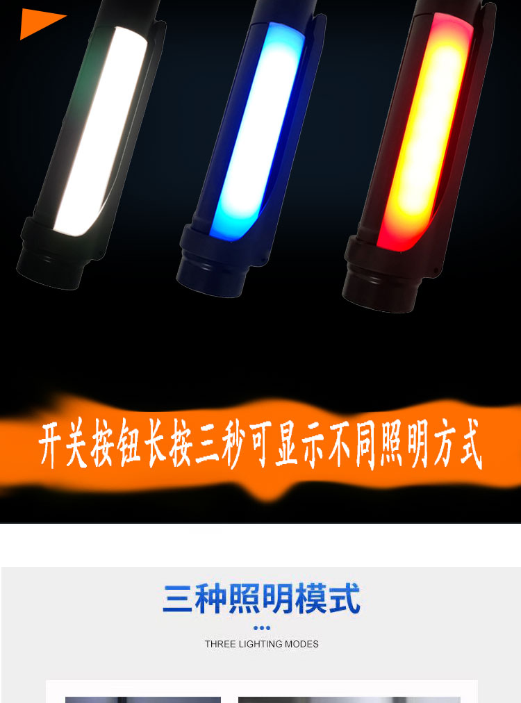 GZD3001N轻便多功能工作灯9W/5W手持应急帐篷棒管灯磁吸式