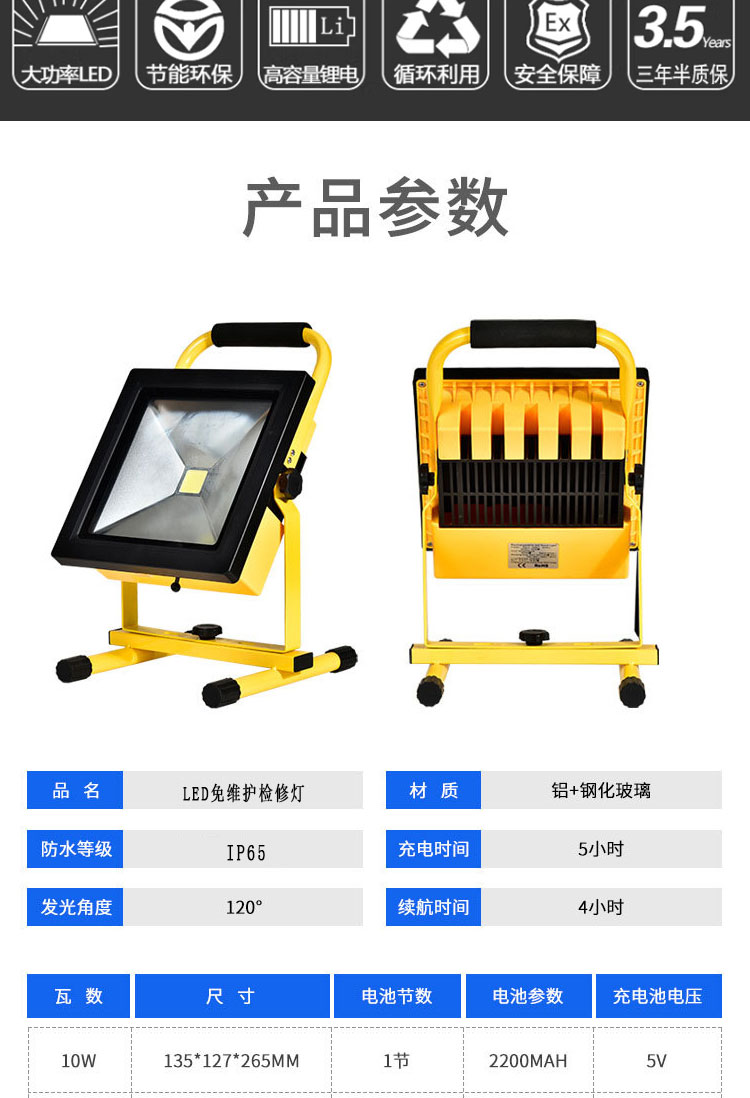 ZL8017便携式充电工作灯20W手提充电泛光灯白光黄光30W鼎轩照明