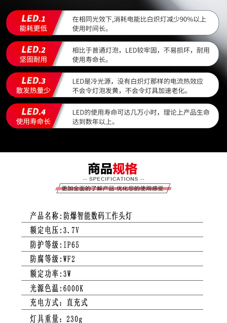 ZL8102LED智能头灯帽戴式3W数量应急检修工作灯户外矿用IP65