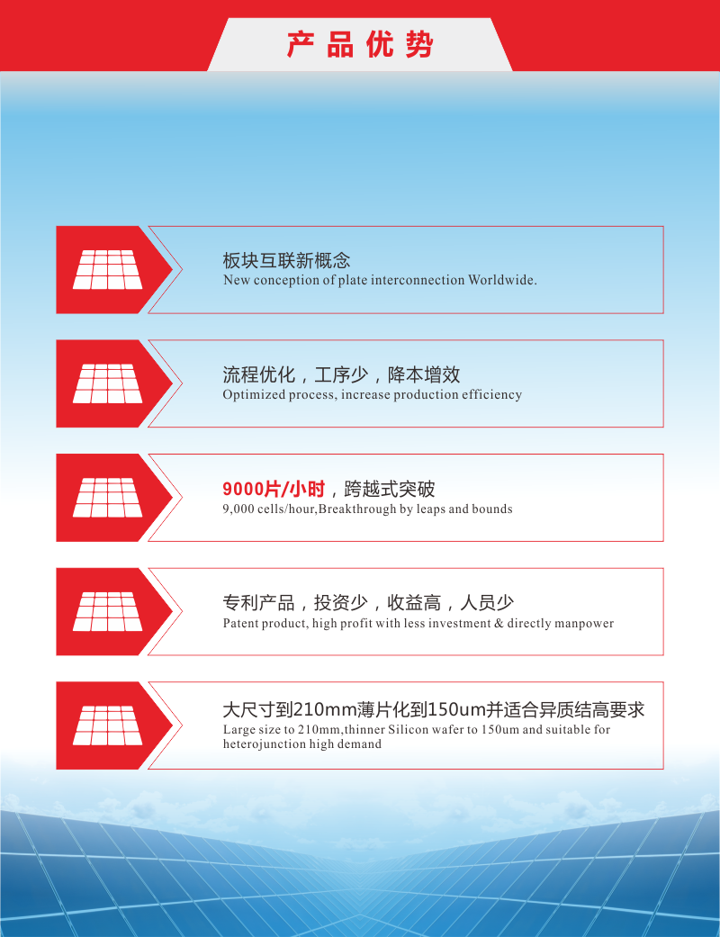 5.大尺寸到210mm薄片化到150um并适合异质结高要求